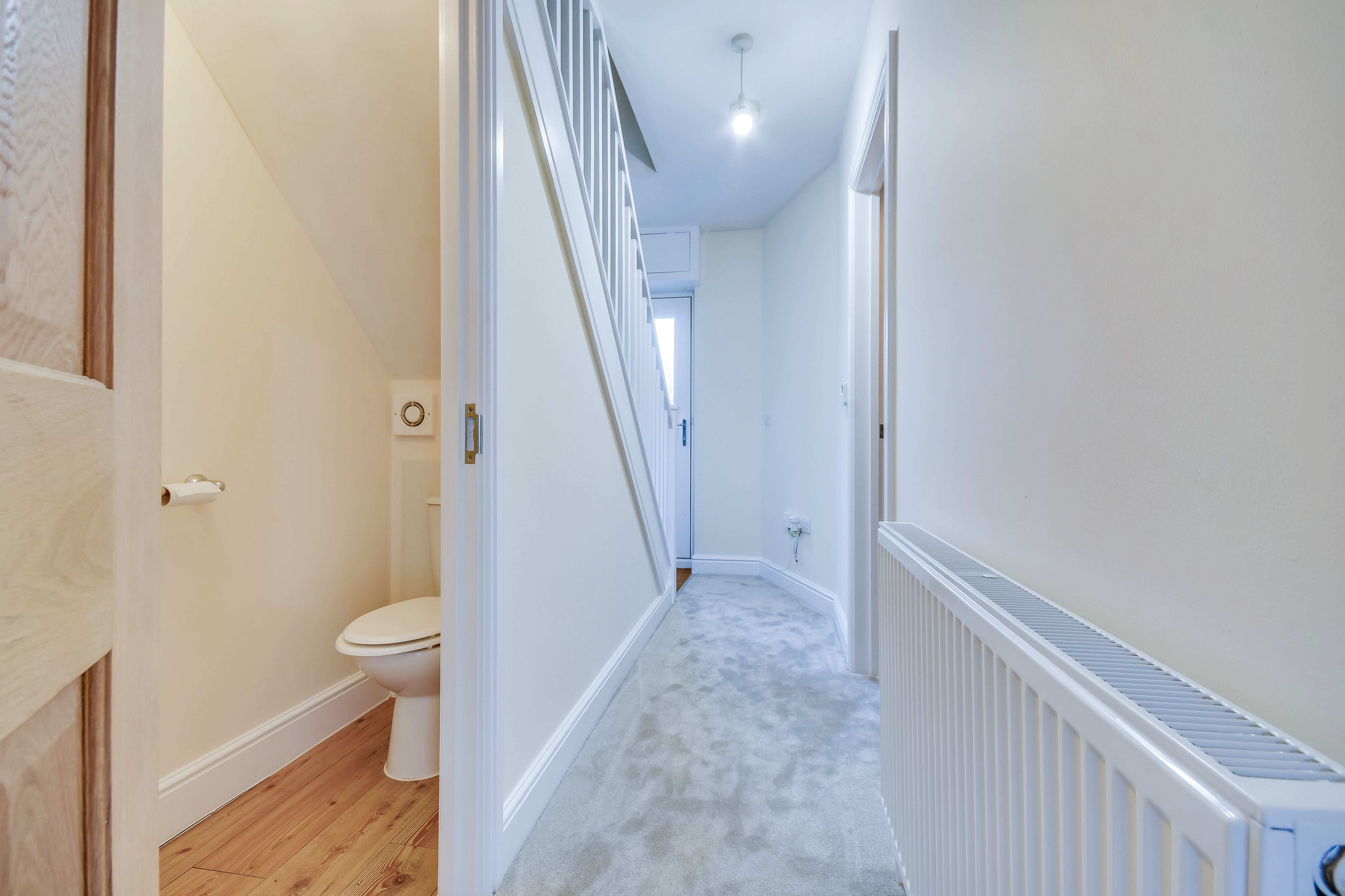 A welcoming hallway with staircase rising to the first floor and access to the cloakroom.